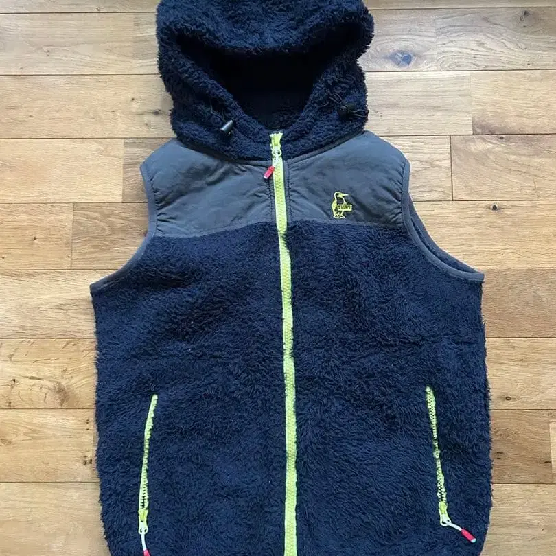 CHUMS 후드 부착 네이비 플리스 베스트 여성용 M