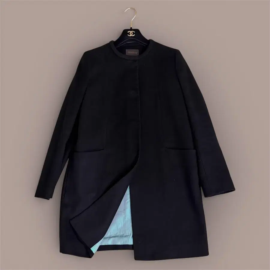 투모로우랜드 캐시미어 혼방 울 노카라 코트 블랙