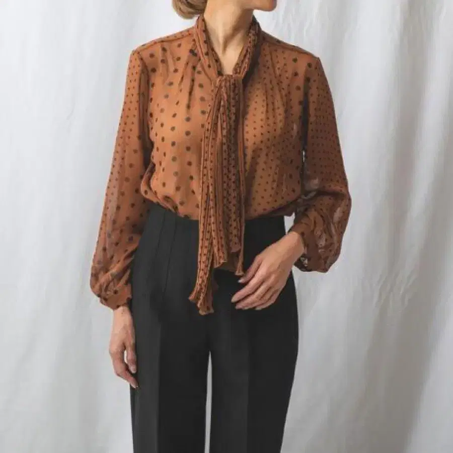 나라 까미체 쉬폰 도트 플리츠 블라우스