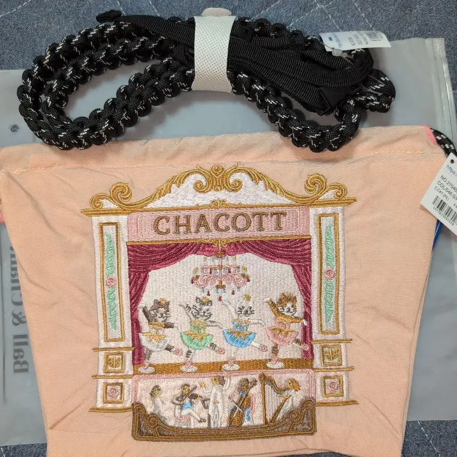 CHACOTT 발레리나 자수 파우치 핑크 스트랩 포함