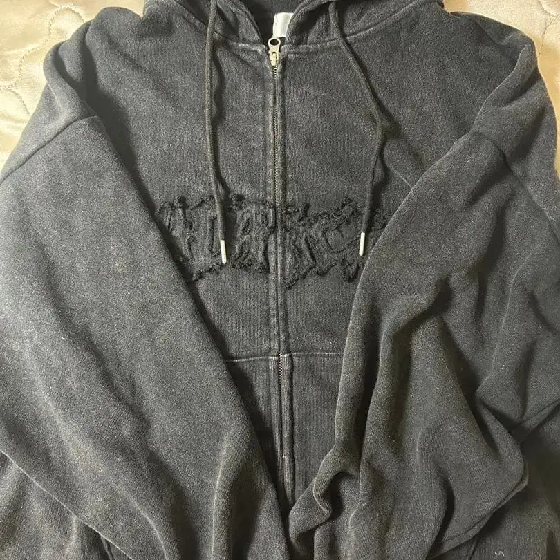 아들러 블랙 빈티지 가공 더블 지퍼 후드티