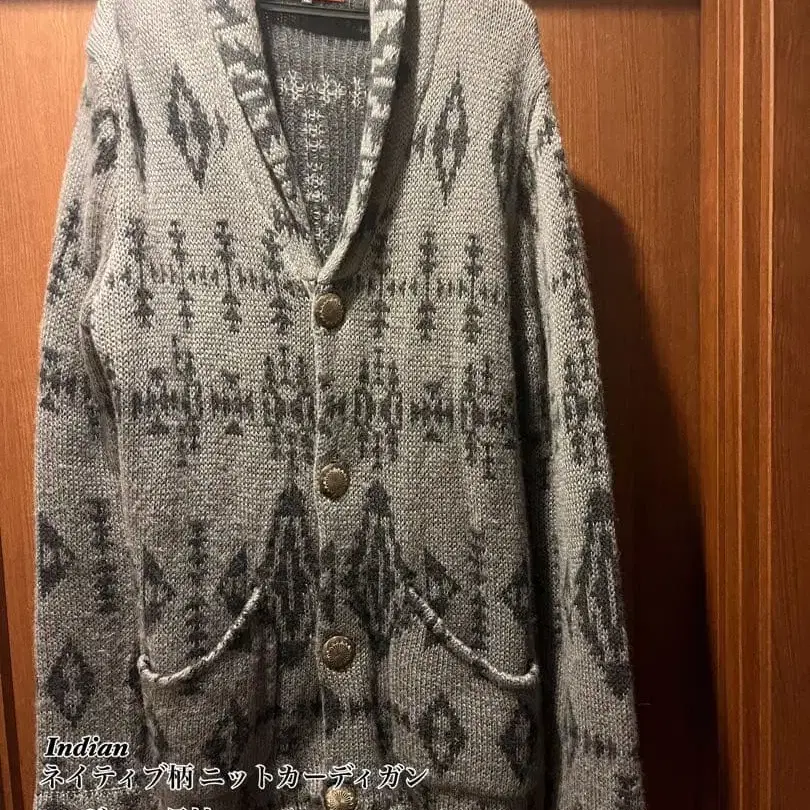 인디언 Indian 네이티브 무늬 니트 가디건 LL 그레이