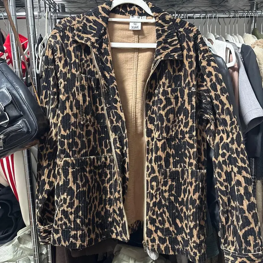 x-girl 레오파드 무늬 코듀로이 자켓