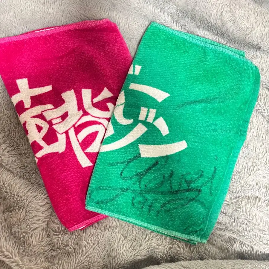 라운드숄더의 네이비 세존 타월 2장 세트 ( 핑크 그린 )