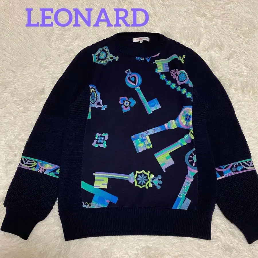 [레오나르] 열쇠 프린트 네이비 니트 스웨터 울 100% M 사이즈