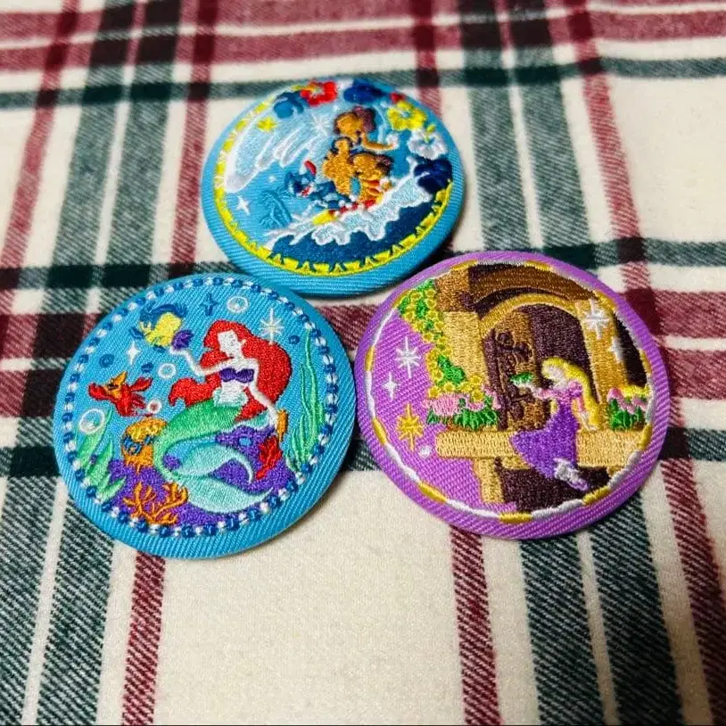 디즈니 자수 캔뱃지 아리엘 라푼젤 리로&스티치
