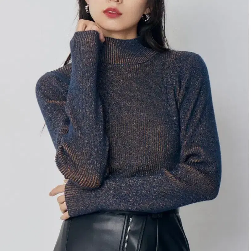 MURUA 바이컬러 라메 크롭 니트