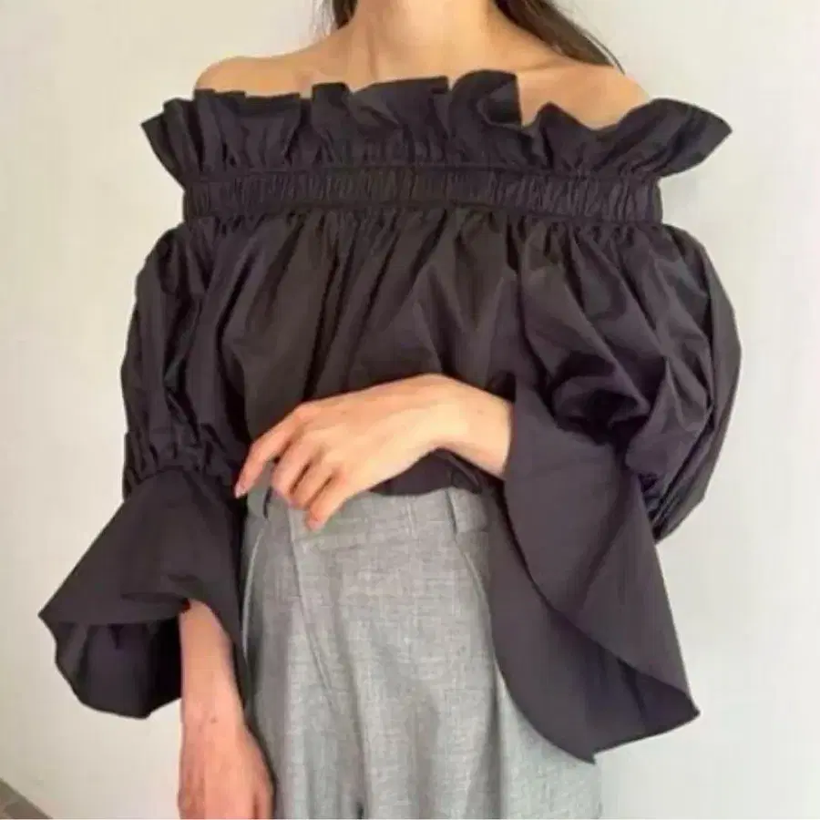 SNIDEL 스나이델 오프숄더 크롭 블라우스 다크 그레이