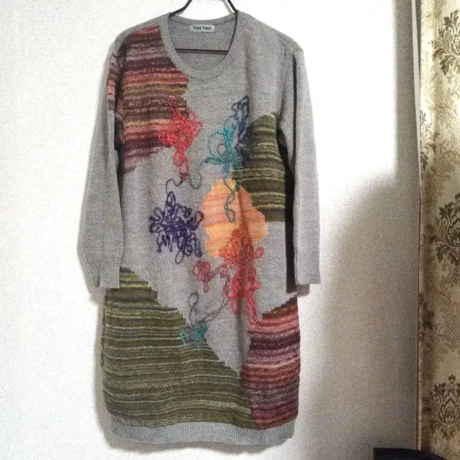 FUGA FUGA 그레이 컬러풀 자수 긴팔 원피스
