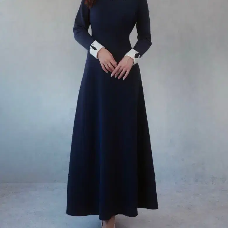 JUNOAH 바이컬러 세미 플레어 니트 원피스