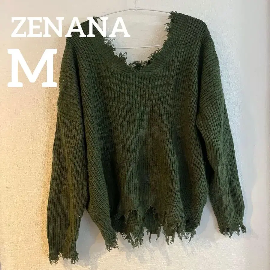자동 번역되었어요. 원문보기올리브 그린 프린지 가공 V넥 스웨터, M 사이즈.