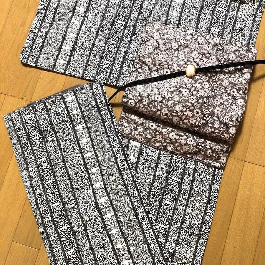 순수 실크 코몬 화이트에 흑먹색의 오리엔탈 세로 라인 보타니컬