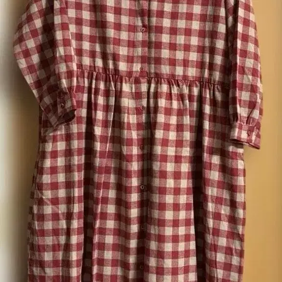 사만사 모스모스 빨간색 베이지 체크 원피스
