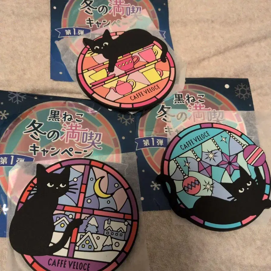 CAFFE VELOCE 베로체 블랙 고양이 러버 코스터 3개 세트