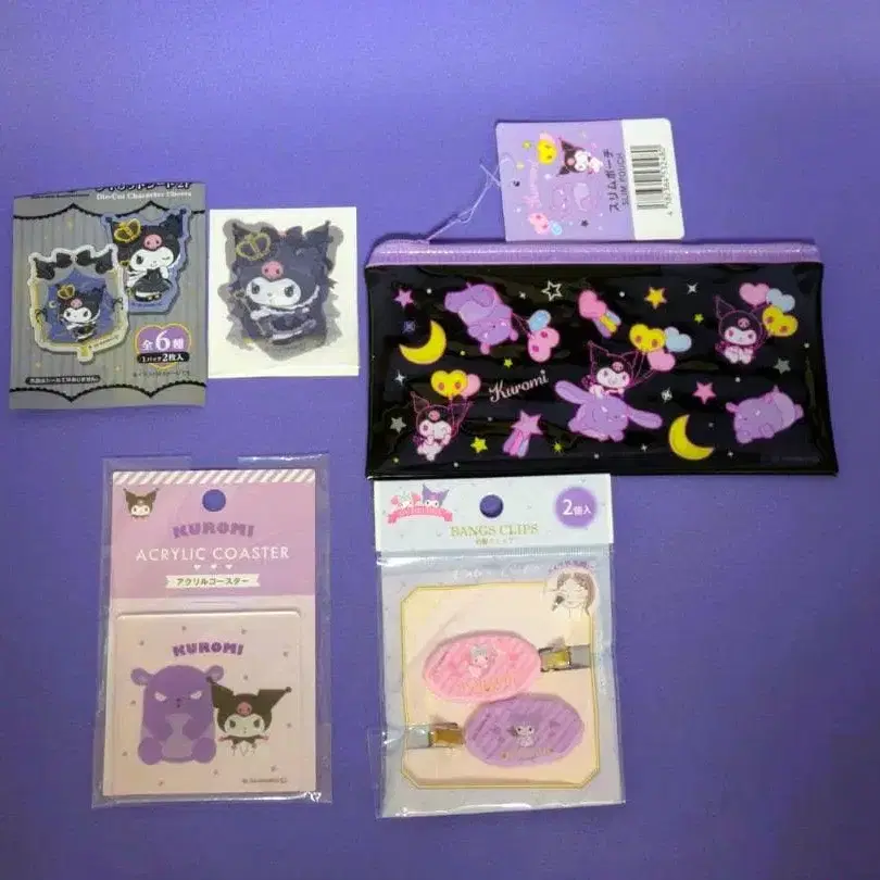 산리오 쿠로미 슬림 파우치 다이컷 시트 아크릴 코스터 앞머리 클립