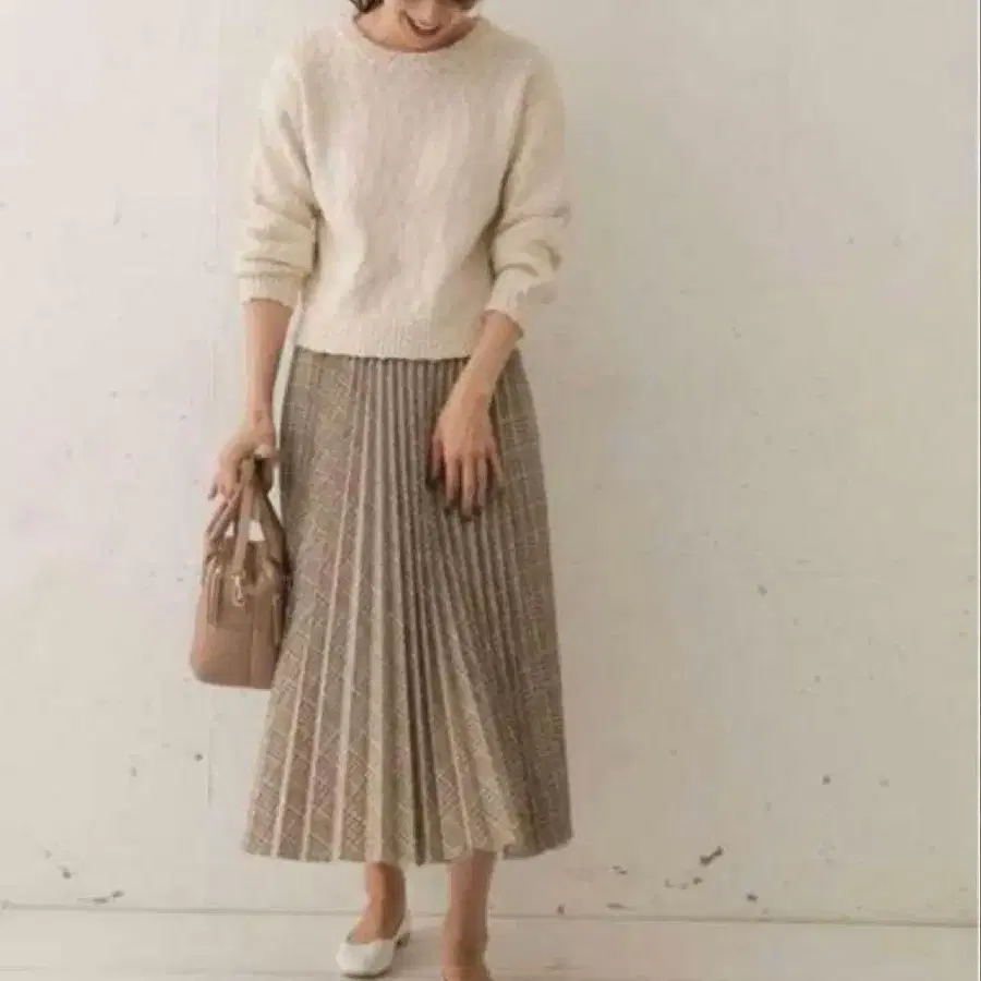 어반 리서치 도어즈 체크 플리츠 스커트 베이지