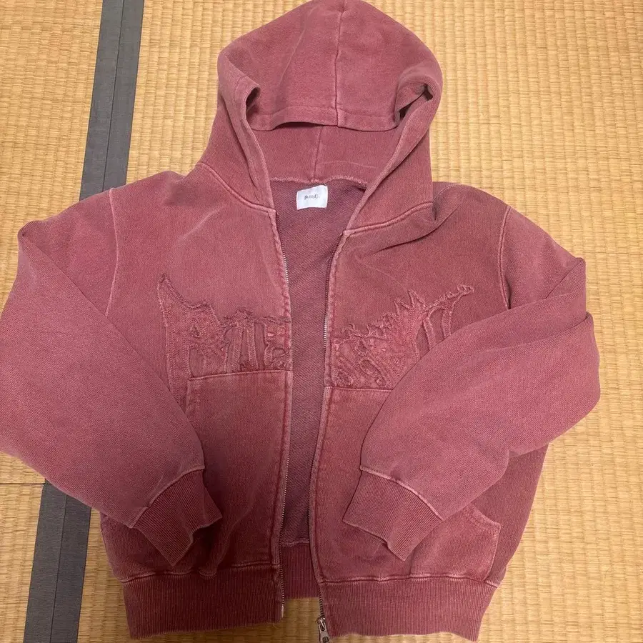 BlessU 풀 집업 후드 부착 후드티 핑크