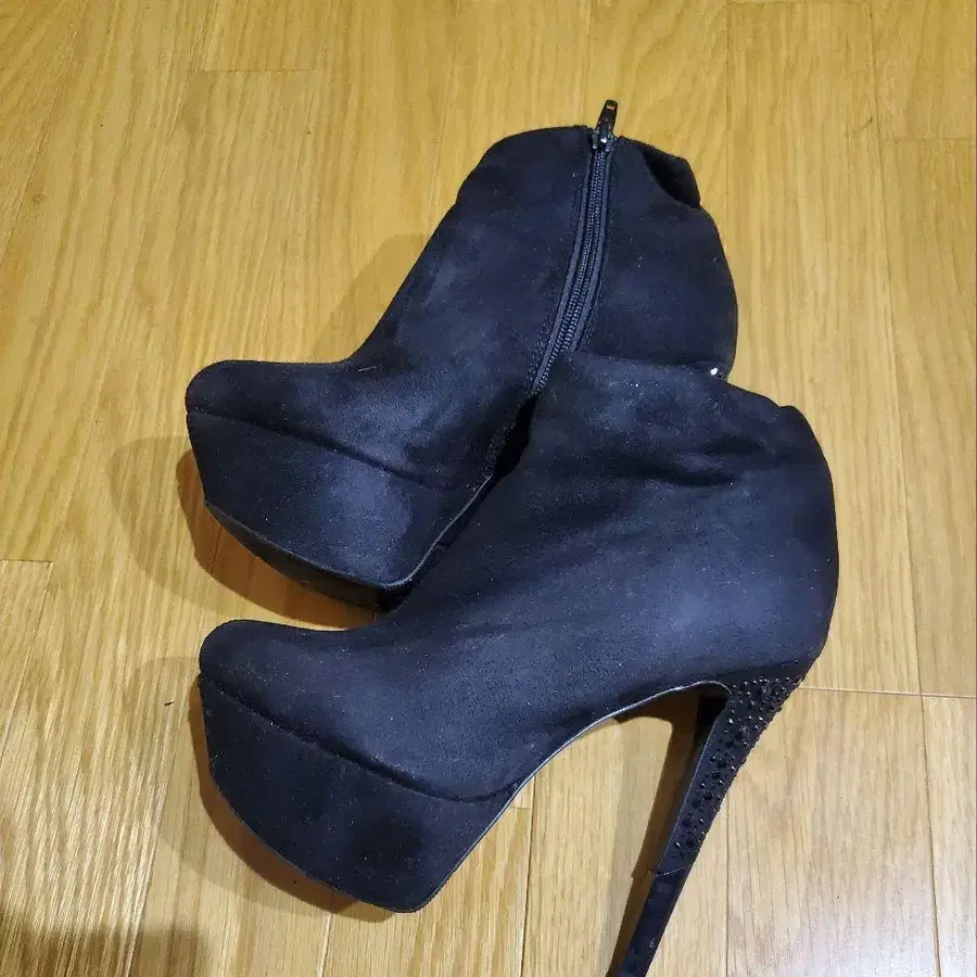 블랙 스웨이드 숏부츠 통굽 R&E 24.0