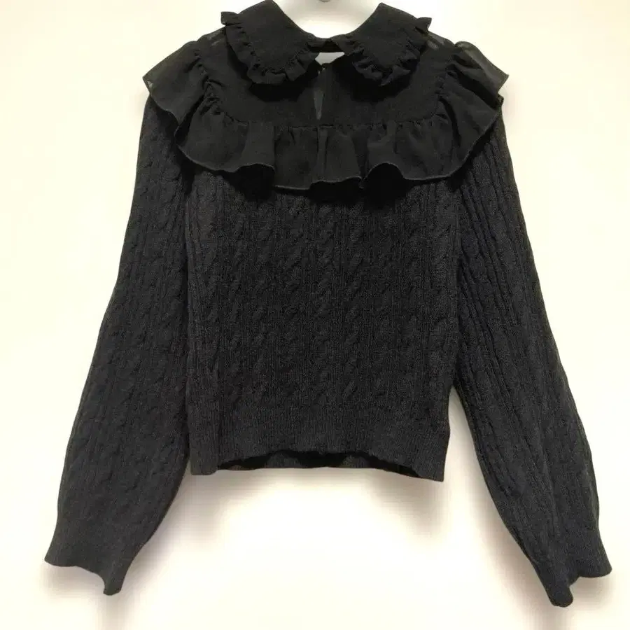 evelyn 케이블 니트 M 프릴 펄 블랙
