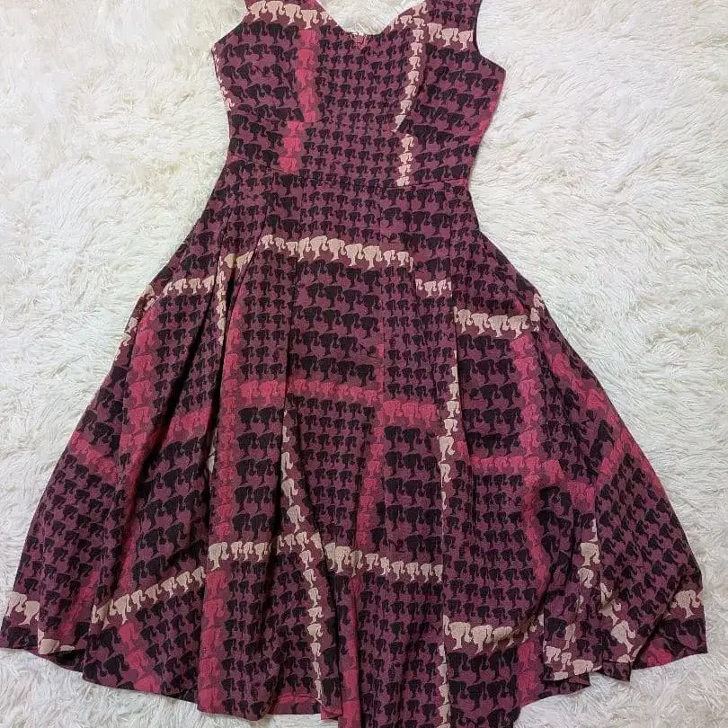 코끼리 패턴이 특징인 슬리브리스 무릎 기장 원피스.
