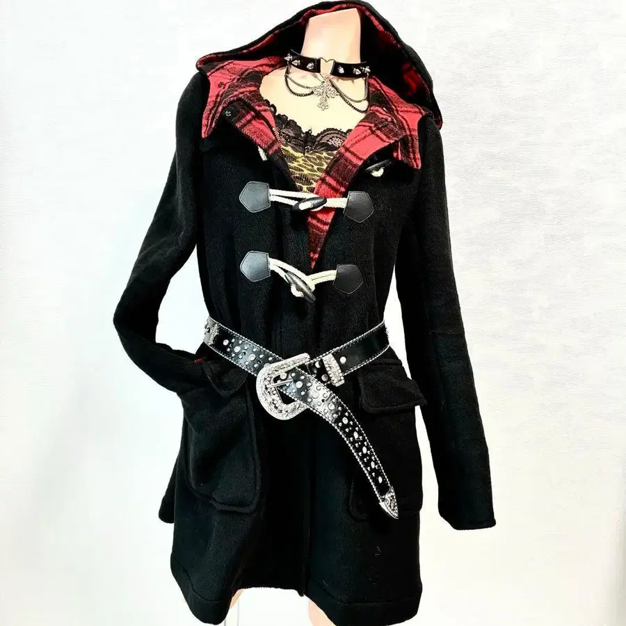 자동 번역되었어요. 원문보기NANA 느낌의 블랙 x 레드 체크 코트입니다 ♪