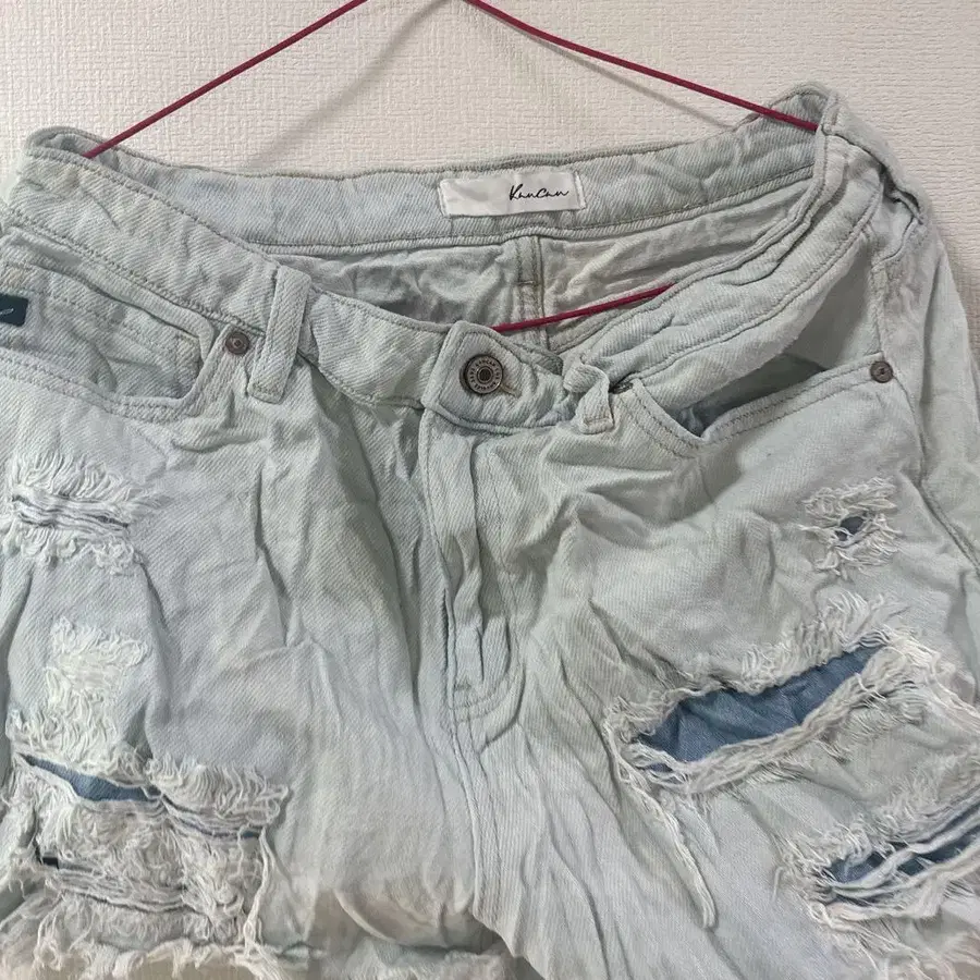 자동 번역되었어요. 원문보기데미지 가공이 특징인 KanCan 브랜드 숏팬츠, 100% 코튼 소재로 쾌적한 착용감.