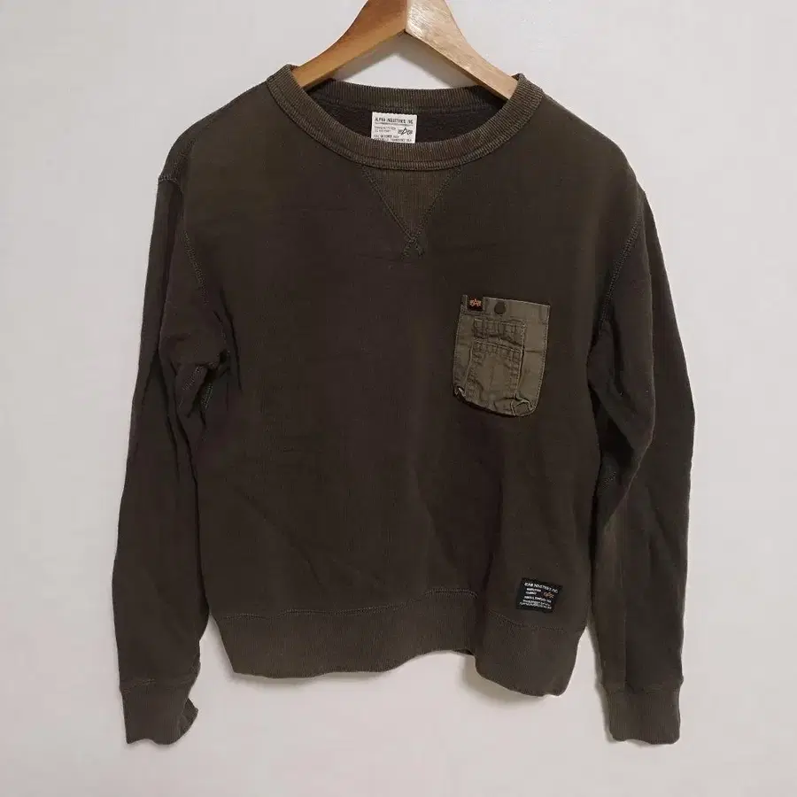 M 사이즈 ALPHA INDUSTRIES 속기모 포켓 부착 맨투맨 카키