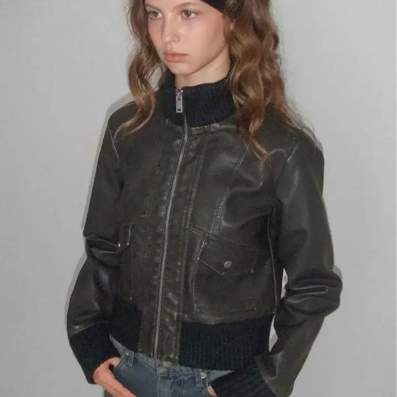 blackup 아봉 시보리 레더 점퍼 블랙 블랙