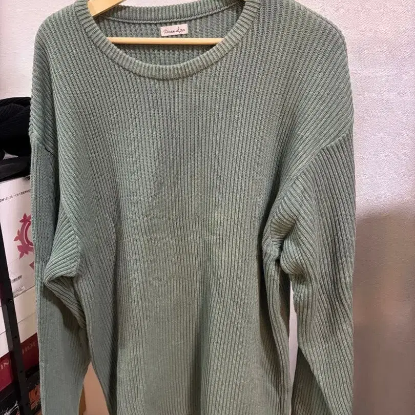 리브 편직 그린 오버사이즈 스웨터