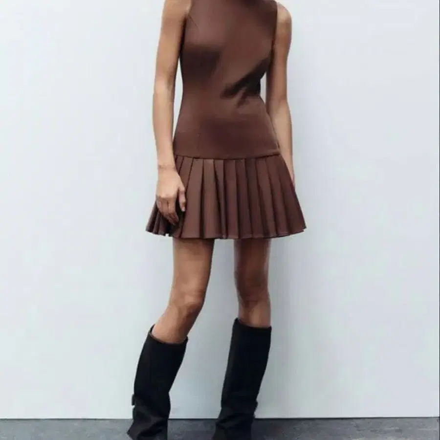새상품급 ZARA 박스 플리츠 미니 원피스