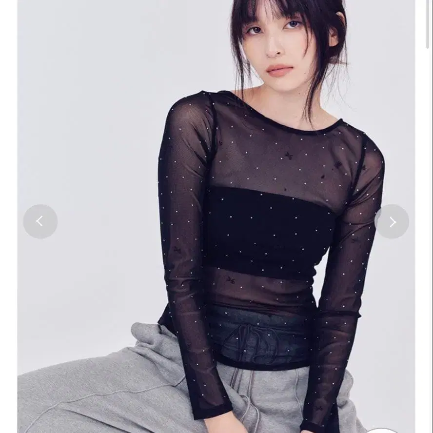 FRAY I.D 블랙 메쉬 긴팔 상의