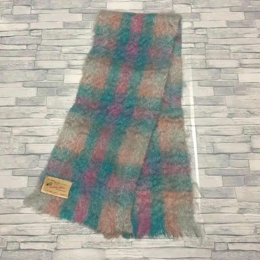 스코틀랜드제 모헤어 75% 머플러 스톨 파스텔 컬러 체크 무늬