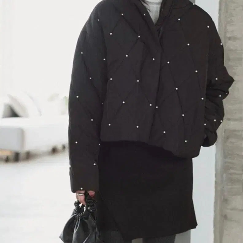 고베 레터스 펄 장식 충전솜 퀼팅 코트 다운 자켓