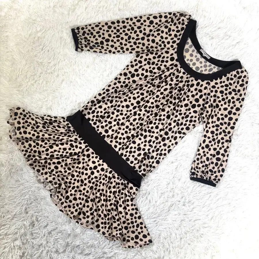 내추럴 뷰티 베이직 [M] 도트 원피스 7부 소매 플레어 베이지