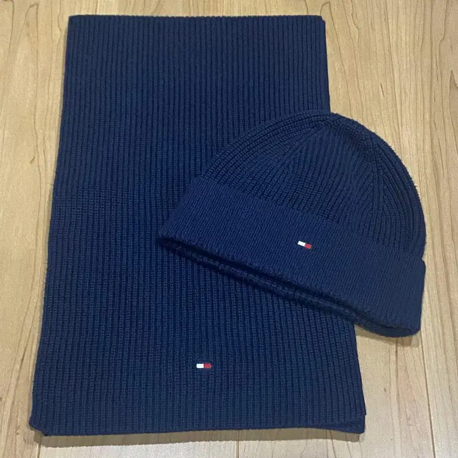 [새상품급] 타미힐피거 머플러 모자 세트 네이비