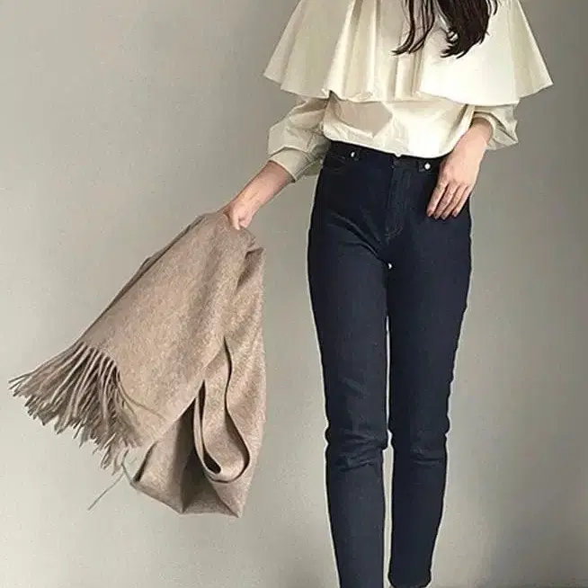 플라이걸 데님 팬츠 밑단 보아 스트레치 이탈리아제