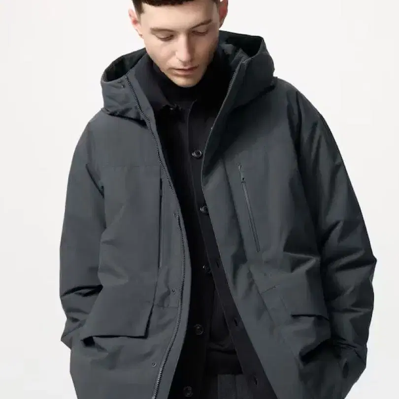 [ M 사이즈 ] 유니클로 하이브리드 다운 후드티 다크 그레이