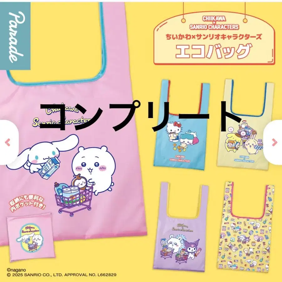 치이카와 산리오 캐릭터즈 에코백 전 5종 컴플리트 세트