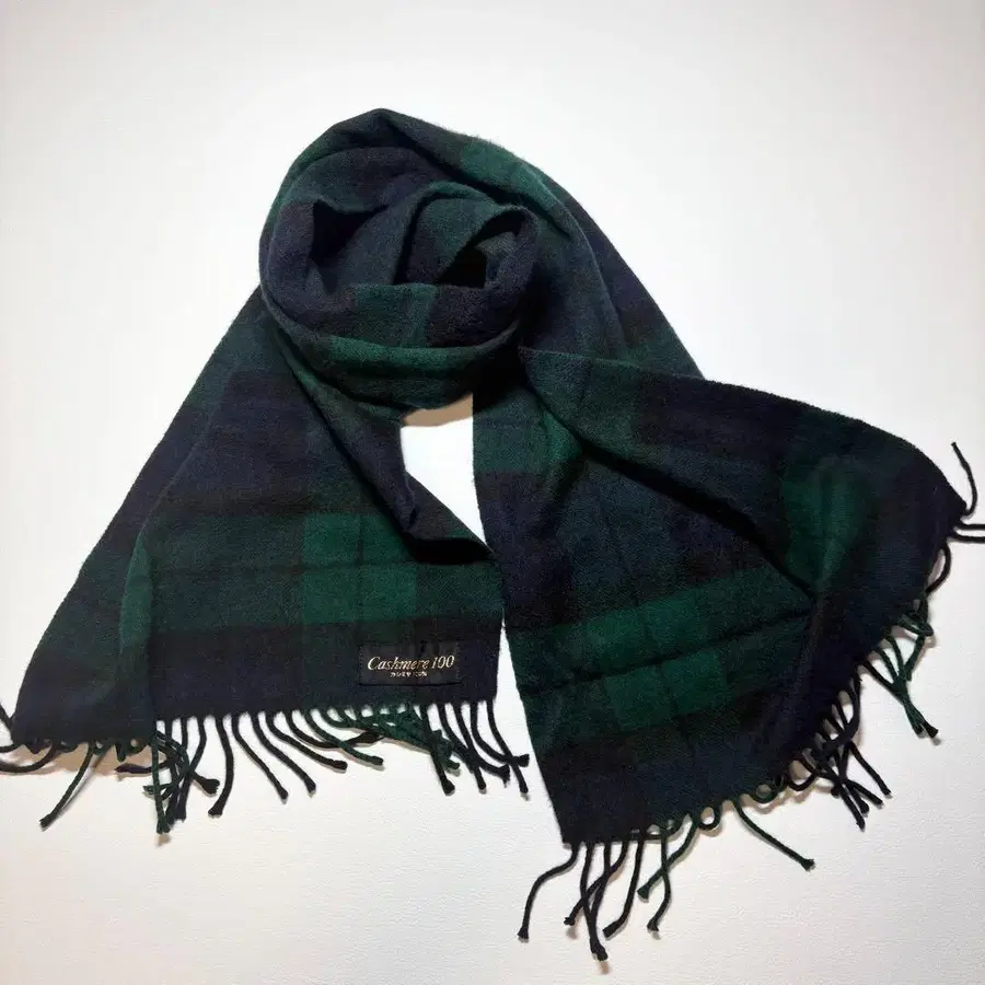 캐시미어 100 블랙워치 패턴 머플러 스톨 그린 체크