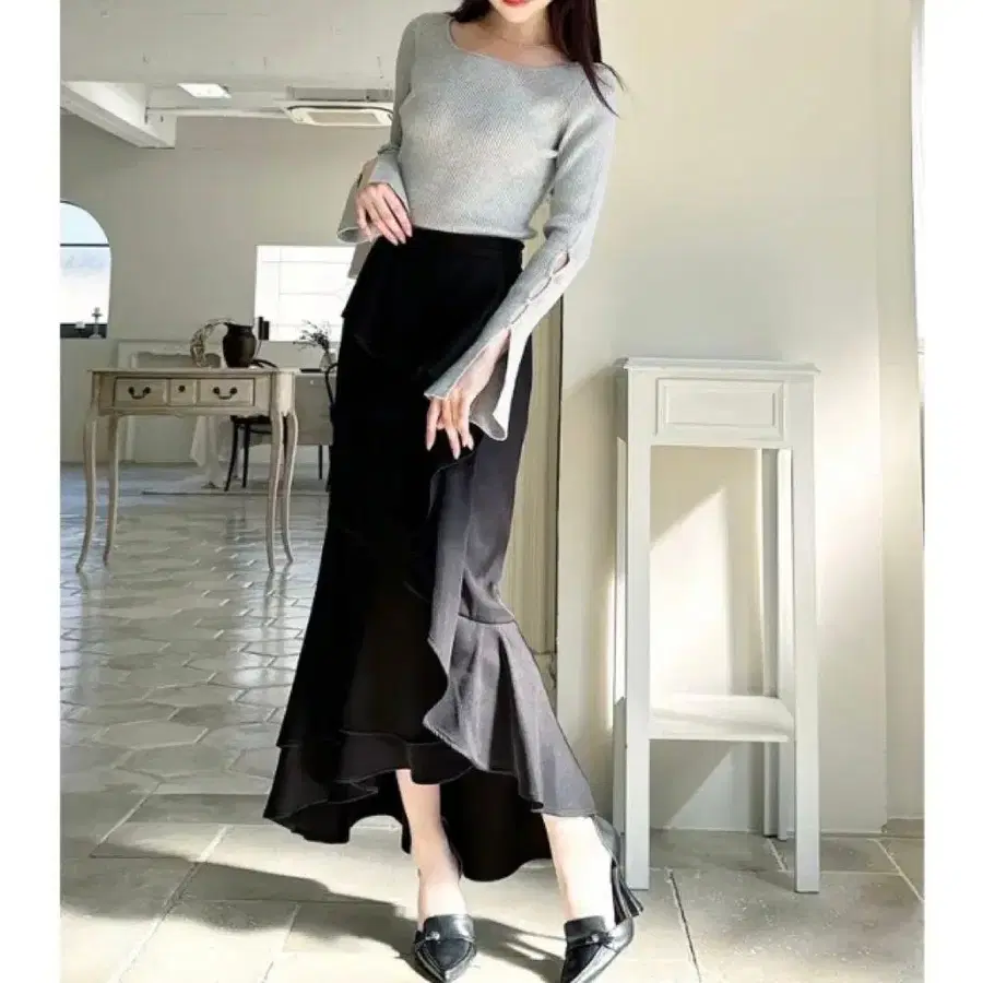 RESEXXY 캐스케이드 머메이드 스커트 블랙 프리 사이즈