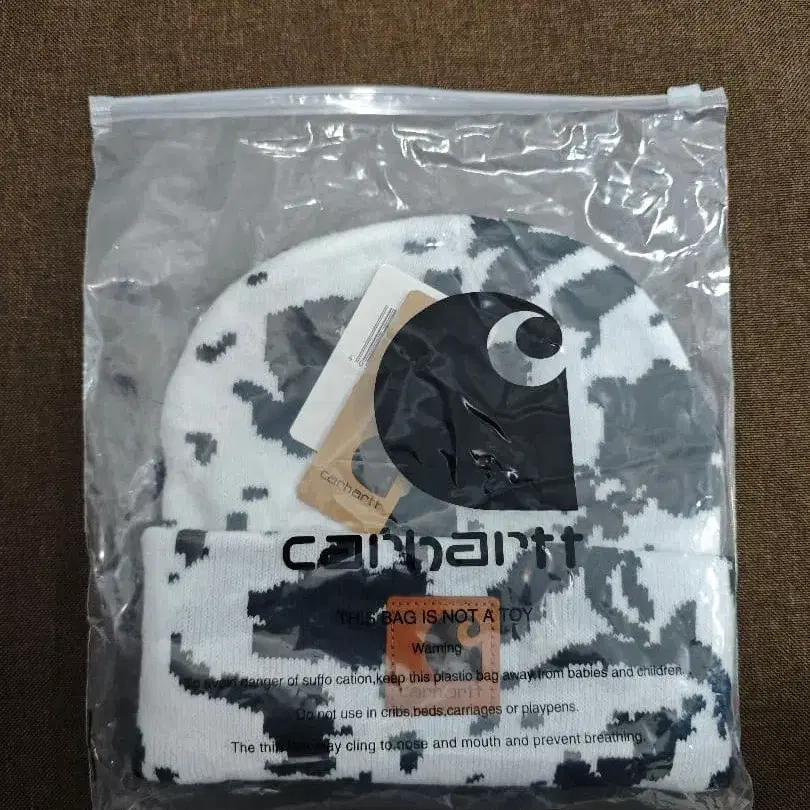CARHARTT 소 패턴 니트 모자 화이트/블랙