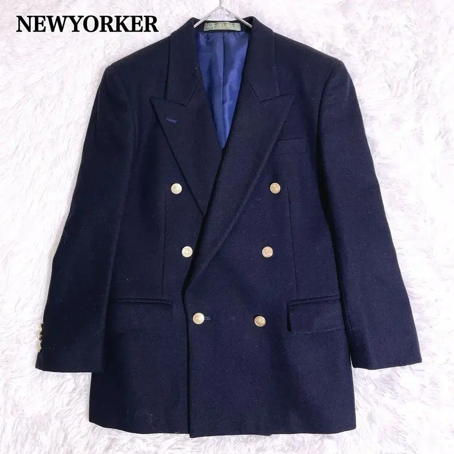 NEWYORKER 골드 버튼 더블 네이비 블레이저 테일러드 자켓 M
