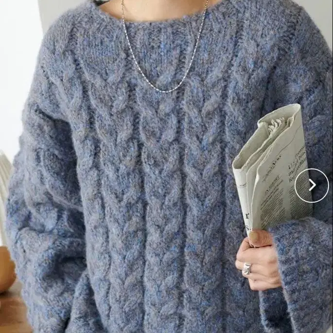 케이블 짜임 파랑 니트 스웨터 FREE 사이즈