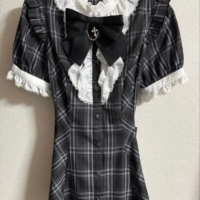 [선착순] 시크릿허니 액세서리 리본 반팔 체크 셋업
