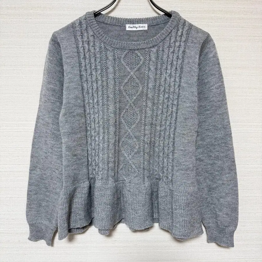 헬시 카렌 밑단 프릴 니트 스웨터 L 그레이 내추럴