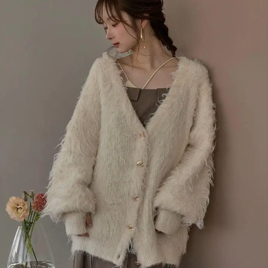 mideal / nuance button shaggy cardigan