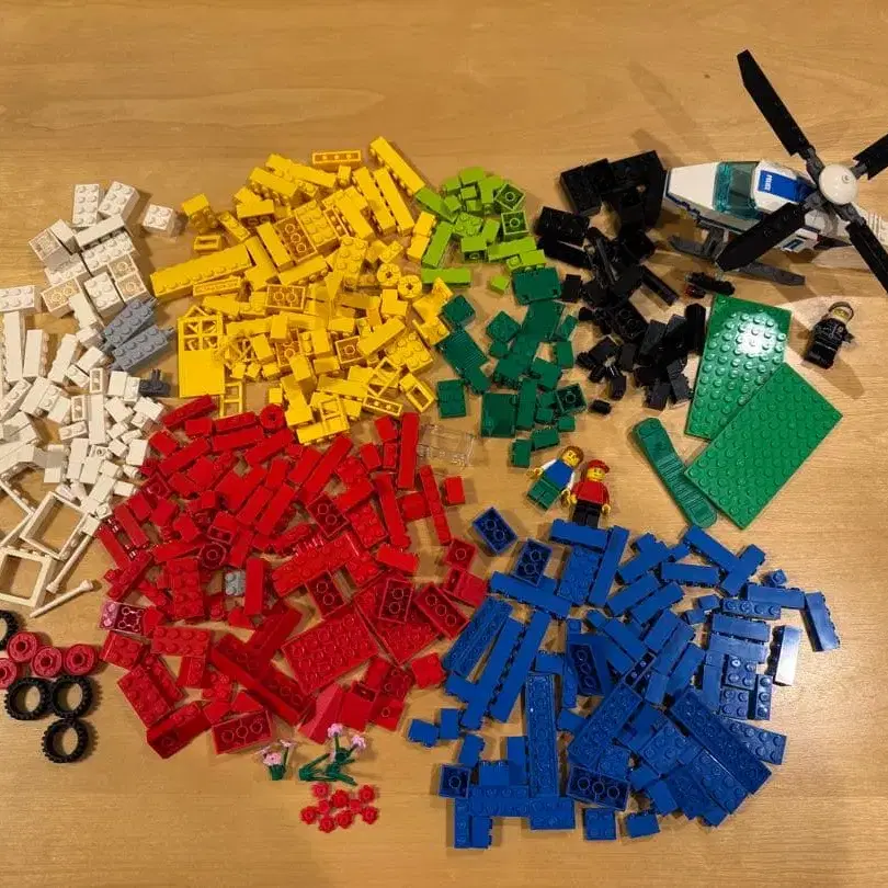 LEGO 파란색 바구니 내용물과 7741 헬리콥터