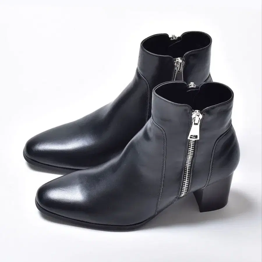 endevice 더블 지퍼 가죽 힐 부츠 남성용 힐 부츠