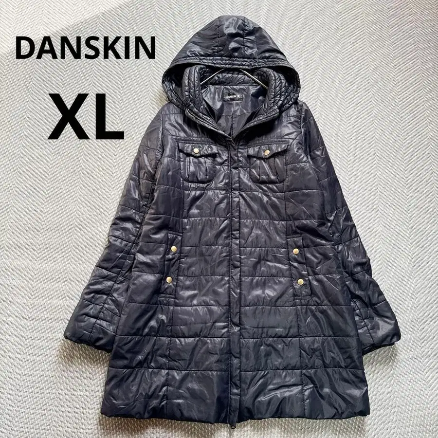 DANSKIN 충전솜 라이트 다운 코트 롱 후드 2way 네이비 XL