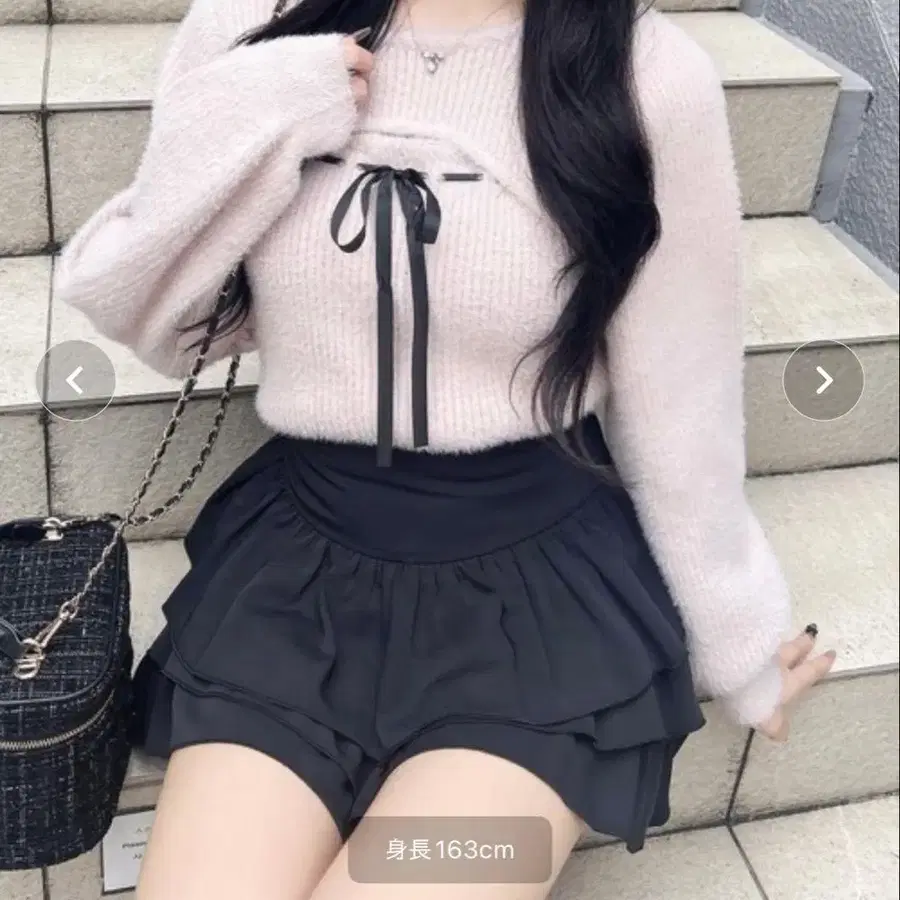 INGNI 페더 리브 데콜테 오픈 리본 니트 핑크